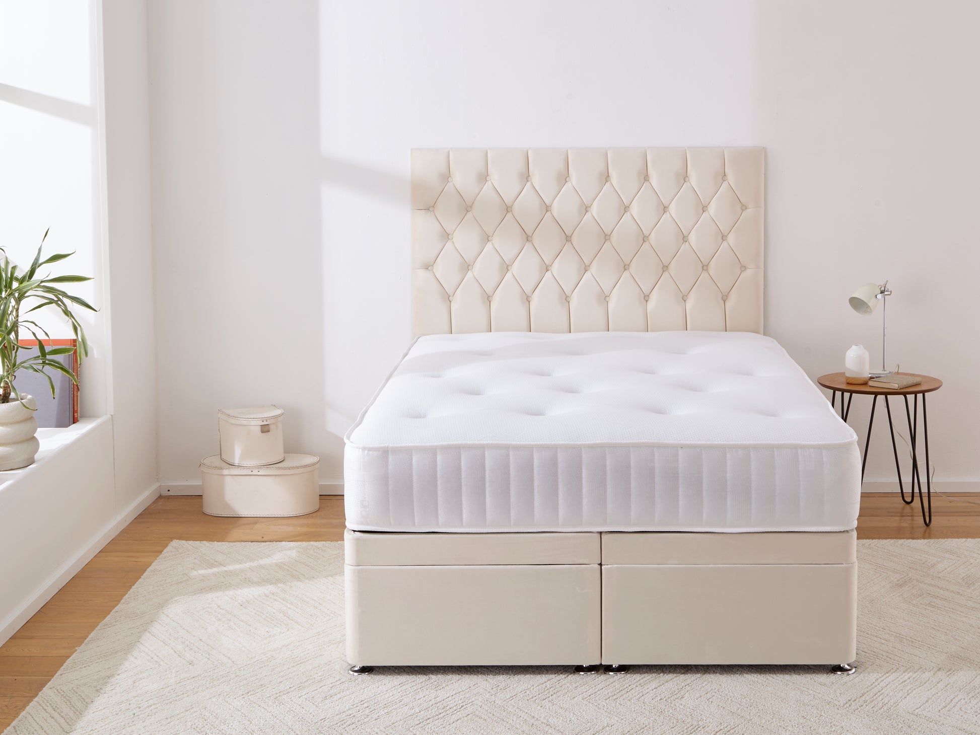 No extra hunting, your divan comes with a headboard made to match. Choose standard (strutted) or floor standing for the fit you prefer. Finish with the fabric and design you love, deep-tufted Chesterfield with fabric buttons, graceful wingback with diamantes or clean, panelled lines for modern simplicity.