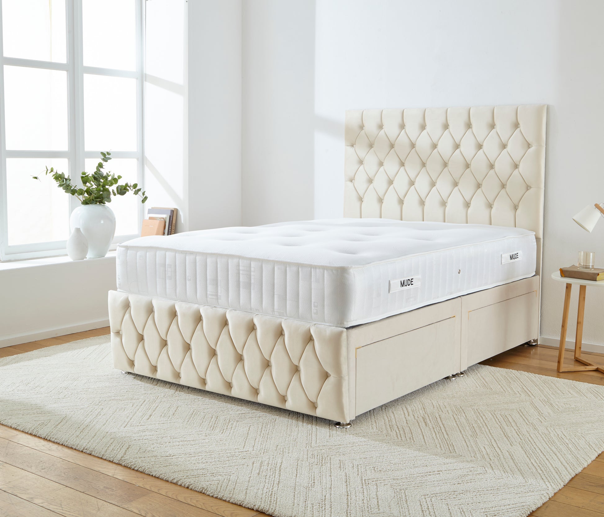 No extra hunting, your divan comes with a headboard made to match. Choose standard (strutted) or floor standing for the fit you prefer. Finish with the fabric and design you love, deep-tufted Chesterfield with fabric buttons, graceful wingback with diamantes or clean, panelled lines for modern simplicity.