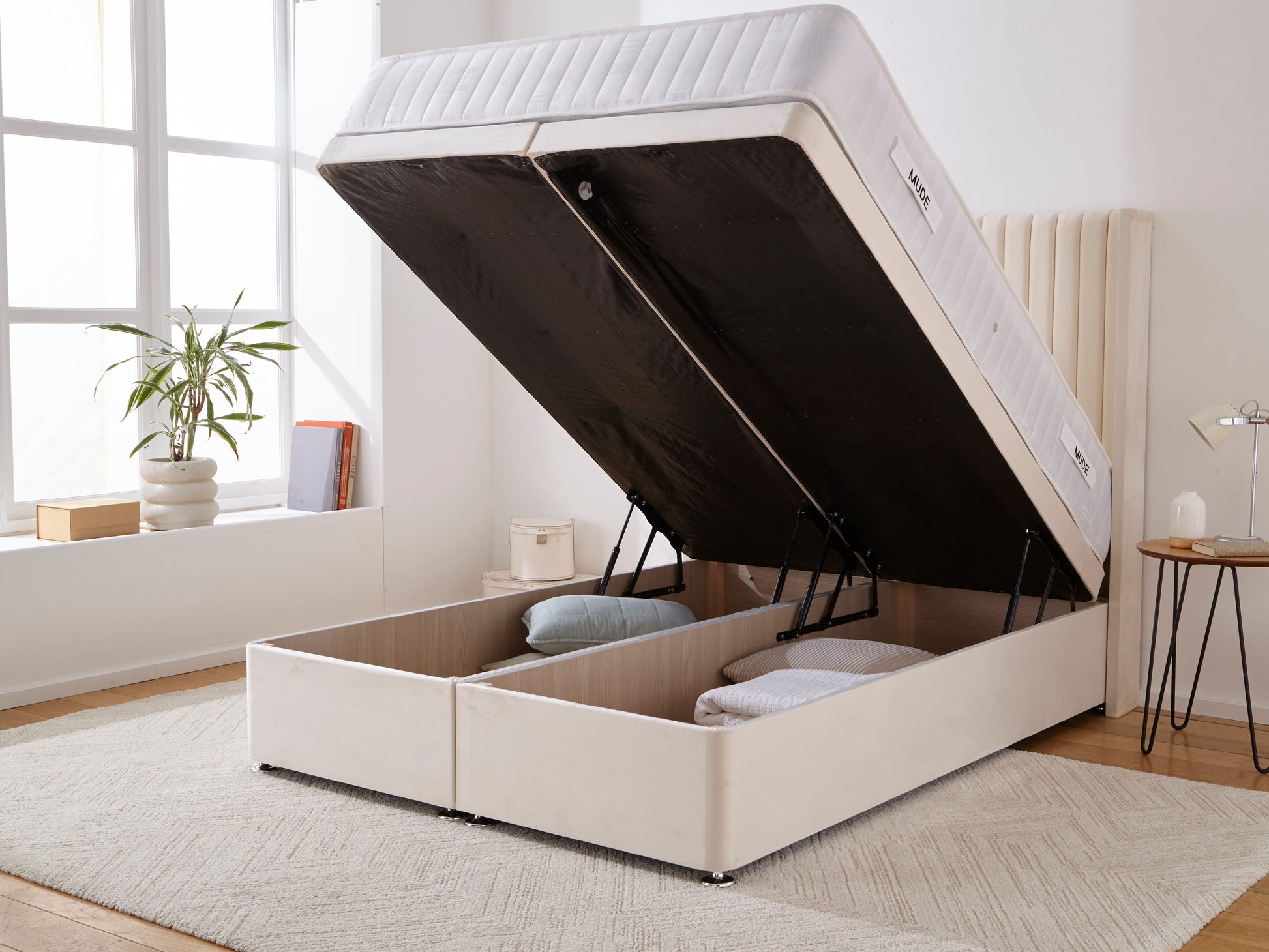 Make the most of your bedroom with our ottoman divan beds, a full under-mattress storage cavity opened by a smooth, gas-assisted lift. Raise with minimal effort, it stays open while you load, then simply lower for a gentle close. Keep bedding, pillows and seasonal pieces organised without extra furniture, while comfort and clean design stay front and centre.