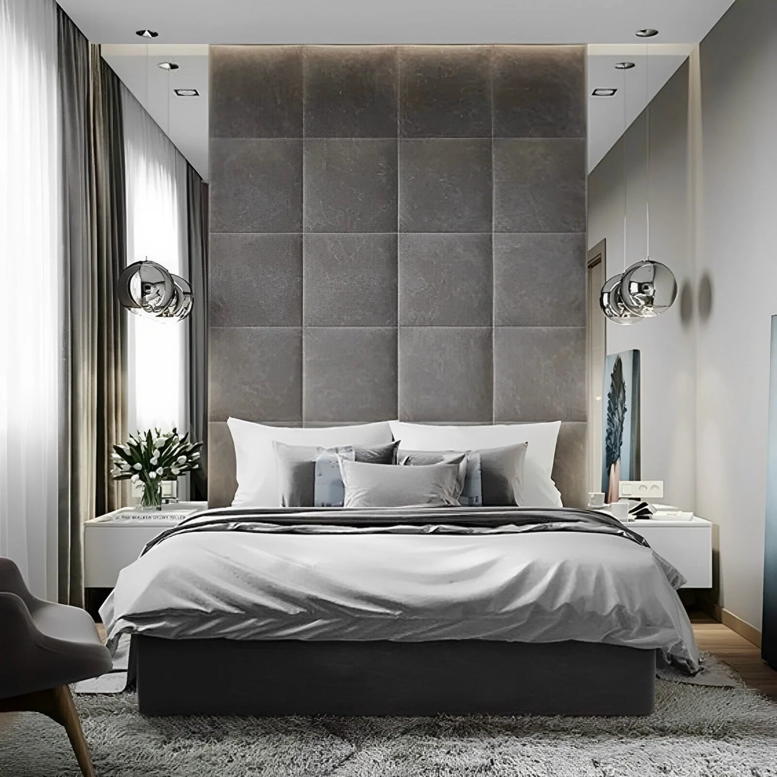 Our upholstered wall panels are sold by the panel, so let your imagination run wild. Plan stripes, stacks, or clean grids with vertical, horizontal, square, or rectangular panels. Mix sizes from compact tiles to tall columns to create anything from headboard-width runs to floor-to-ceiling features.