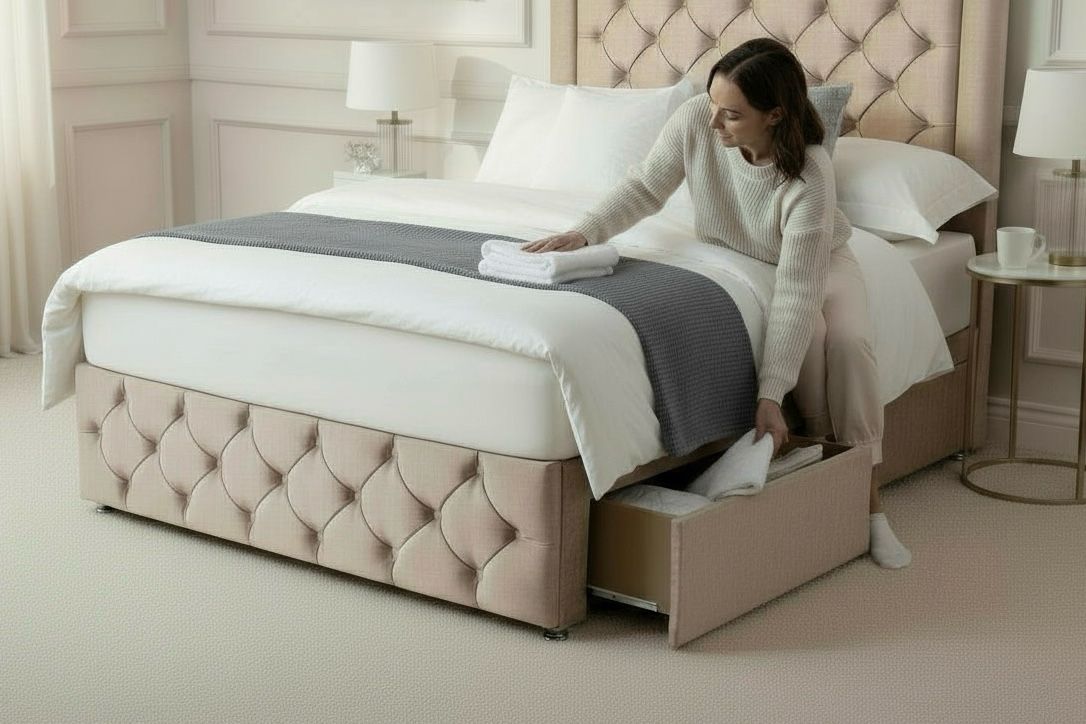 Keep everyday essentials out of sight with integrated drawers. Our range runs from a compact Small Single with 2 side drawers up to a grand Super King with 4 drawers, giving you the storage you need without adding extra furniture, perfect for small rooms and busy homes alike.